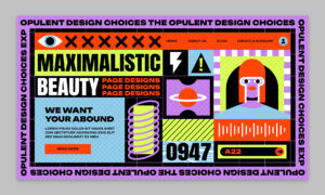 This style goes against the usual design idea of keeping things simple. Instead of following the “less is more” rule, maximalism says “more is more“. With bright colors, overlapping pictures, large texts, and repeated patterns, this style definitely stands out.