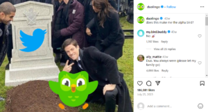 Duolingo is known for employing a humorous and light-hearted tone in their comments to engage with users. This keeps followers entertained and builds a connection between the brand and users. Additionally, brands that also have a bird motif are joining the trend and interacting with Duolingo in the comment sections. These interactions create a fun experience that can attract even more followers and foster a positive impression of each brand involved in the conversation.