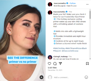 Mac Cosmetics regularly spotlights the beautiful styles their customers make using their products. This not only portrays the brand as more authentic and trustworthy, it also demonstrates the potential of their cosmetics.